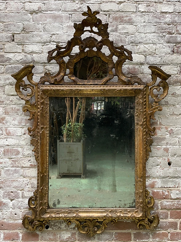 Van Venetiaanse spiegels, zwarte rechte spiegelljisten uit de 17e eeuw tot rijkelijk gestoken bladgoud vergulde spiegels. Veelal zijn de vergulde spiegels uit de 18e eeuw net wat rijkelijker en verfijnder dan hun Franse tijdgenoten.
