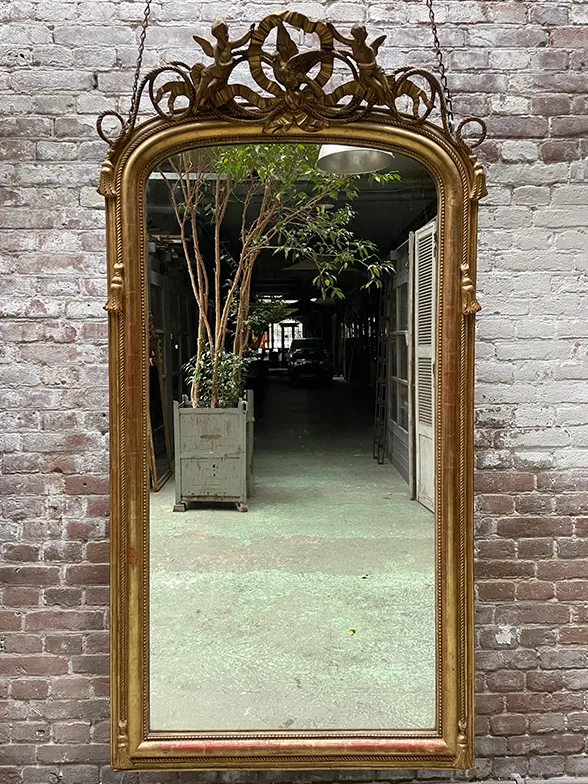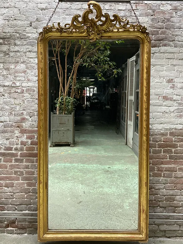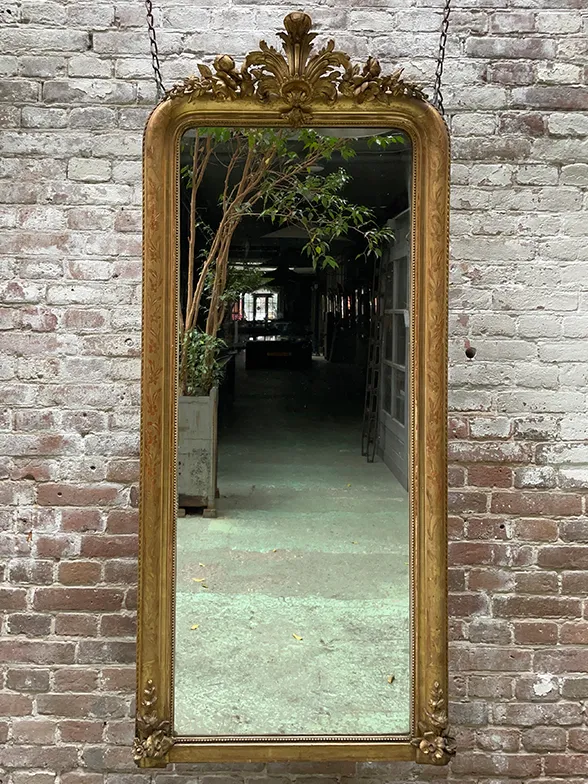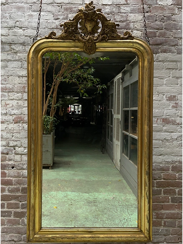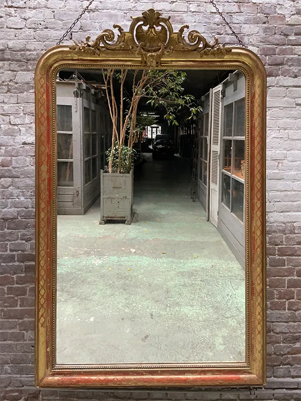 Andere voorbeelden van spiegels uit de 19e eeuw zijn deze spiegels. Gemaakt in de stijl van Louis Philippe. Met of zonder kuif. De lijst heeft vaak een gravure van een blad-, bloem- of streepmotief. De kuifopbouw is doorgaans symmetrisch met een coquille als centraal detail. De eeuwenoude techniek van vergulding is ook hier gebruikt.